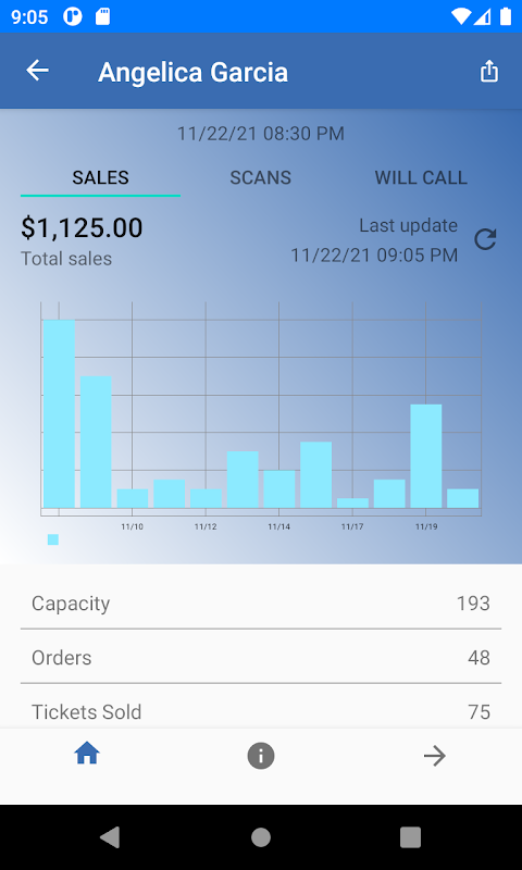 * Uzyskaj dostęp do informacji o sprzedaży biletów w czasie rzeczywistym, w tym przychodów, zamówień i sprzedanych biletów