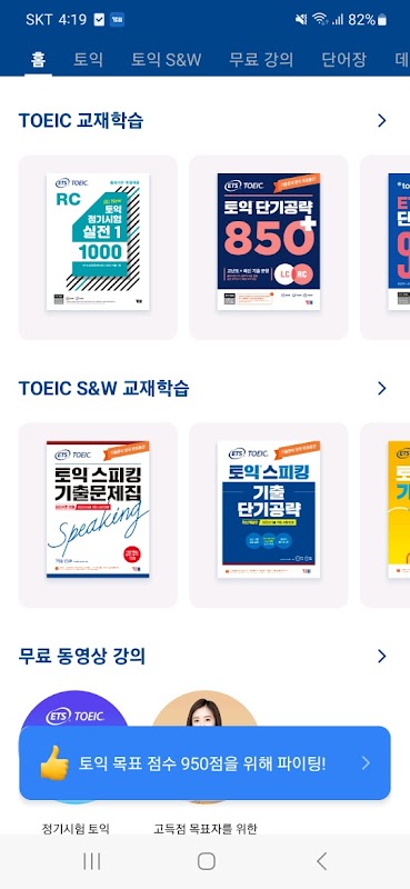 Mobilna platforma do nauki wyłącznie dla książek egzaminacyjnych ETS TOEIC L&R S&W stworzona przez organizatora TOEIC i wyłącznego wydawcę poprzednich pytań, YBM!