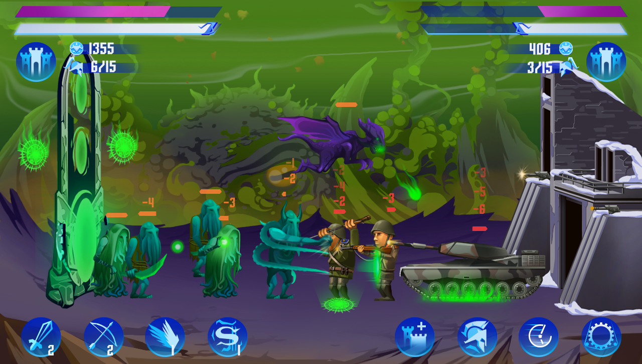 Na pierwszy rzut oka, zadanie jest proste - zniszczyć bazę przeciwnika. Ale nie może być tak proste, jak wydawało się na pierwszy rzut oka. Aby pomyślnie zakończyć misję myśleć jako strateg wojskowy. Wybrać taktykę gry na każdym poziomie epoki. I tylko właściwą równowagę między obroną a atakiem daje ci możliwość wygrania.