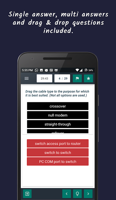 - W czasie rzeczywistym odpowiedzi walidację (co pomaga podczas przygotowywania się do egzaminów !!).
