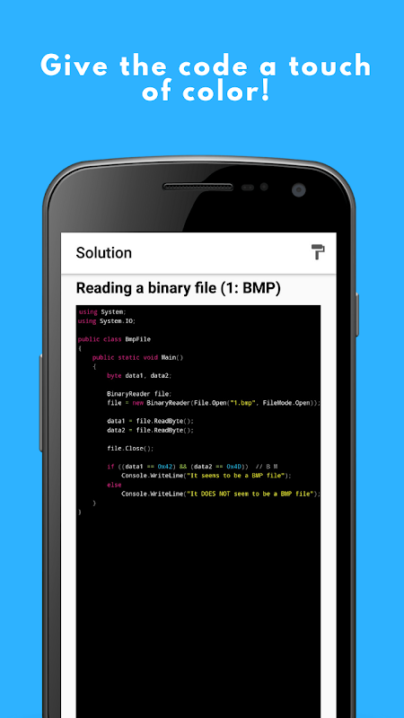 Kurs programowania C# w Twojej kieszeni. Naucz się lub wzmocnij swoje umiejętności jako programista dzięki ponad 200 problemom i praktycznym ćwiczeniom w C#. Wszystkie kody ćwiczeń są zawarte w aplikacji.