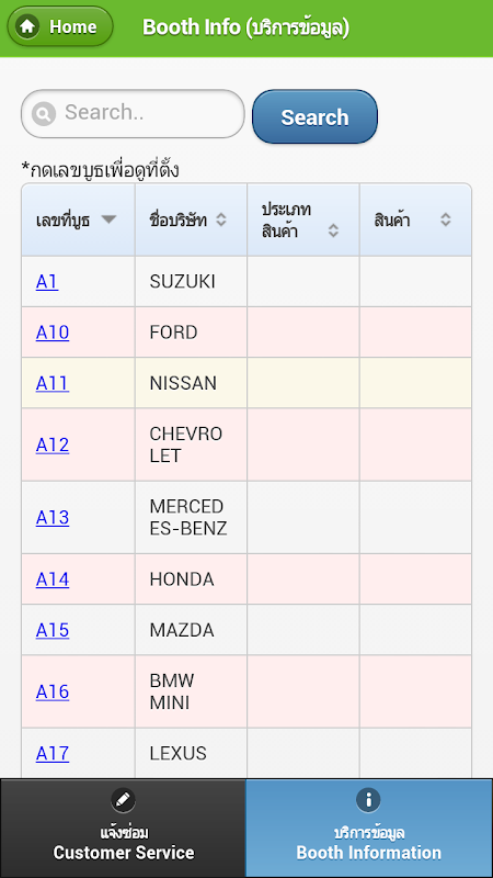 Dwa. Pokaż listę stoisk wewnątrz wybranej wystawy oraz stoisko informacyjne, takie jak nazwa firmy, nazwa produktu, i lokalizacji.