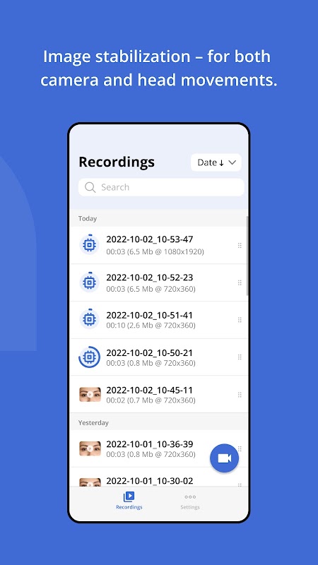 Rejestrując twarz przednią lub tylną kamerą, EyeStabilizer firmy Vertify® GmbH stabilizuje i przycina obszar oczu twarzy za pomocą najnowocześniejszych metod. Pomimo drgań aparatu lub ruchów głowy okolice oka zawsze pozostaną ustabilizowane i wysokiej jakości.