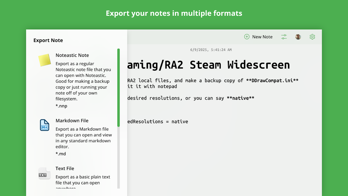 EZ Notepad obsługuje również synchronizację w chmurze po zalogowaniu się na konto Ape Apps, dzięki czemu możesz mieć swoje notatki zawsze przy sobie, niezależnie od używanego urządzenia. Możesz również eksportować notatki w wielu formatach, w tym Markdown, zwykły tekst, HTML, a nawet PDF.