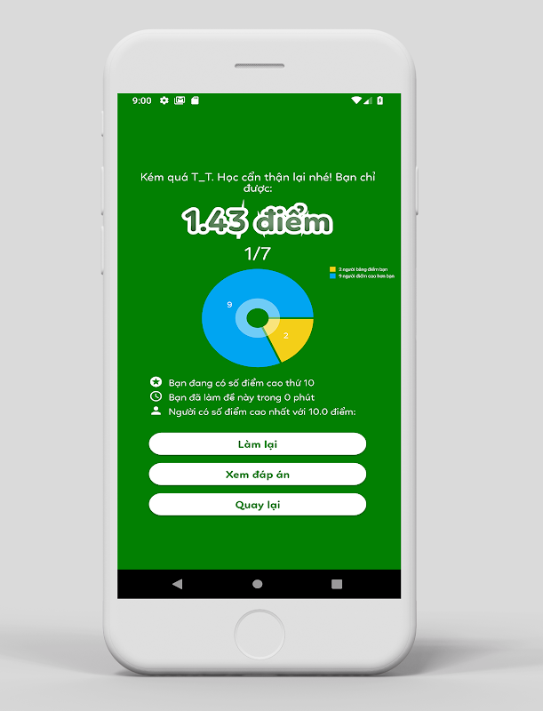 - Xếp hạng kết quả thi, so sánh kết quả thi với tất cả người dùng, tạo môi trường thi đua lành mạnh.