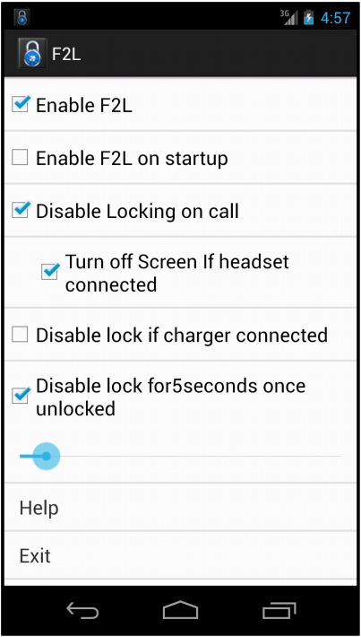 Also you can specify to disable the app while a call is in progress. Time can be set for which the app will remain disabled once you unlock the screen. This avoids unwanted locking.