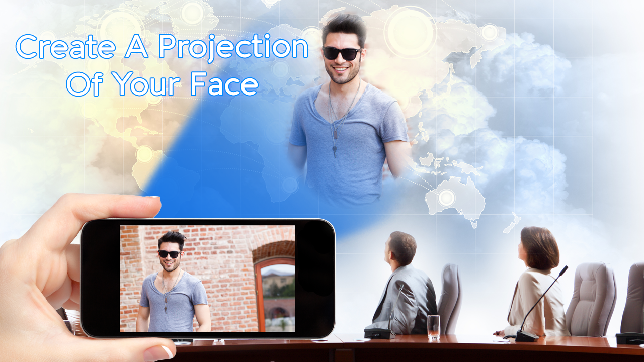 Ta aplikacja jest najfajniejsze symulator Projekcja Twarz w App Store. Ta aplikacja działa jako przyszłej projekcji, jak będzie działać jako mobilny projektor. Ta aplikacja może być również stosowany jako wybryk z potworów pokazać, czy telefon pracuje w projektorze. Łatwe udostępnianie tej aplikacji z rodziną i przyjaciółmi na różnych platformach społecznościowych.