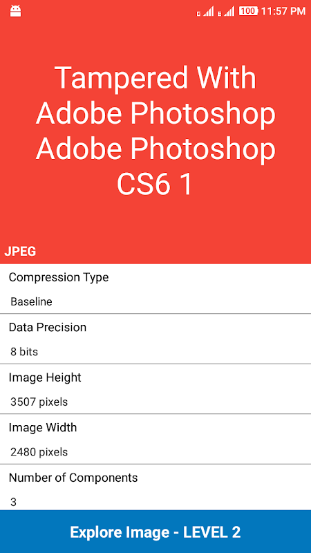 Po zrobić zdjęcie za pomocą aparatu, wiele informacji jest osadzony w obrazie (jak nazwa kamery, data capure etc), który jest znany jako metadane, czyli dane o danych. Metadane ulega zmianie, gdy naruszone wszelkie oprogramowanie do edycji obrazu. Anomalie mogą być wykrywane przy użyciu analizatora metadanych.