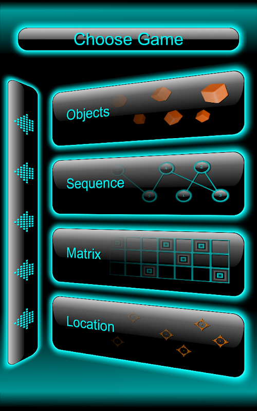 Family Memory Trainer ma cztery gry: Objects, Sequence, Matrix i Location. Każda gra ćwiczy różne rodzaje pamięci. W grze Objects musisz zapamiętać różne obiekty. Game Objects jest niezbędna do treningu zapamiętywania różnych obiektów, obrazów, przedmiotów, rzeczy. W grze Sequence musisz zapamiętać przyciski, które pojawiają się jeden po drugim. W grze Matrix musisz zapamiętać wszystkie komórki danej macierzy. A w grze Location musisz zapamiętać lokalizację wszystkich celów na ekranie.