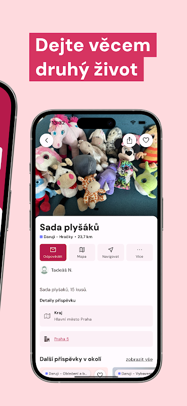 Aplikacja oferuje możliwość wyszukiwania pomocy materialnej za pomocą mapy, tj. możesz łatwo zobaczyć, kto jest w twojej okolicy potrzebny lub oferuje konkretną pomoc materialną. Jeśli dawca chce zaoferować na przykład zasłony, może łatwo dowiedzieć się, kto potrzebuje takiej pomocy w swoim otoczeniu. I odwrotnie. Osoba potrzebująca, która potrzebuje jedzenia, po prostu widzi na mapie, czy ktoś oferuje taką pomoc w ich okolicy, czy może wnieść własny wkład w to zapotrzebowanie.