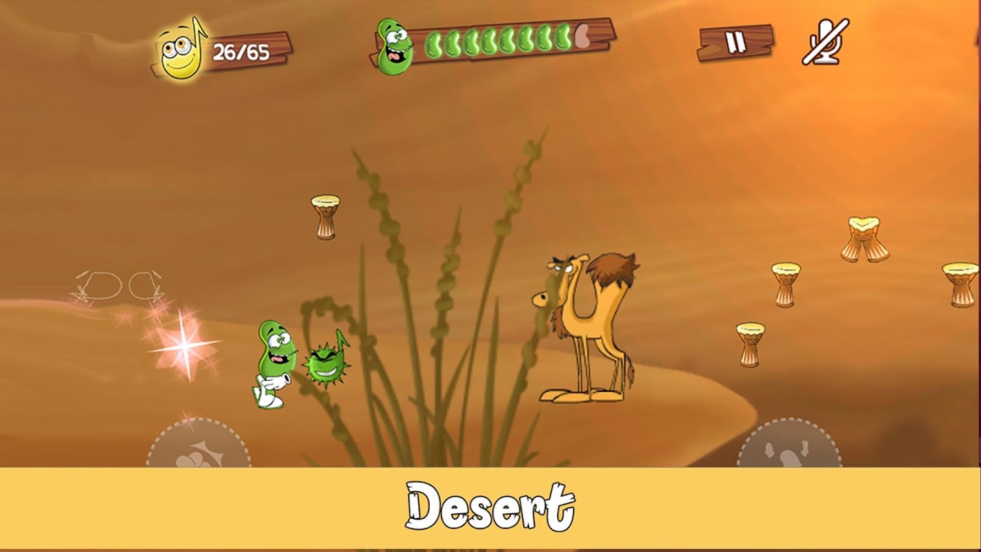 The goal of the game is to navigate the bean throughout the levels from start to end while collecting musical notes and avoiding obstacles and enemies. There are two types of controls, the first being the traditional on screen buttons scheme to make the character jump or dodge. The second however, is unique as it enables players to play the game Hands Free! Yes! Hands-Free by using their voice to make the bean react.