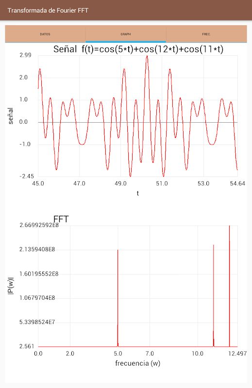 Jeśli masz dane w pliku .xls .dat .txt i chcesz obliczyć transformatę Fouriera, aby znaleźć częstotliwości tworzące sygnał Użyj tej aplikacji, jedynym warunkiem jest to, że ilość danych jest potęgą 2. Dane f(t ) musi być „w jednej kolumnie”, bez kolumny czasu. Nie powinno być tekstu ani pustych linii.