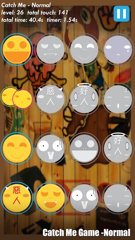 In "Catch ME" mode, you will see multiple icons lighted at one time. Your response is to find and touch all icons. Then, you can get to the next level. However, if you touch a dim icon or you cannot touch all icons within time limit, you will lose.