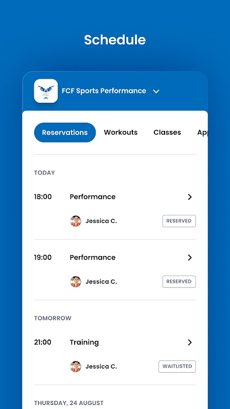 Rezerwacje zajęć i zarządzanie kontami dla członków FCF Sports Performance