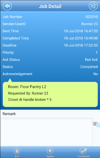 Posiada wrodzoną inteligencję biznesową do wysyłania zleceń w oparciu o zestawy umiejętności biegaczy, ich dostępność i lokalizacje. Personel inżynierii hotelu może również skorzystać z funkcji przesyłania wiadomości ad-hoc w celu lepszej komunikacji.