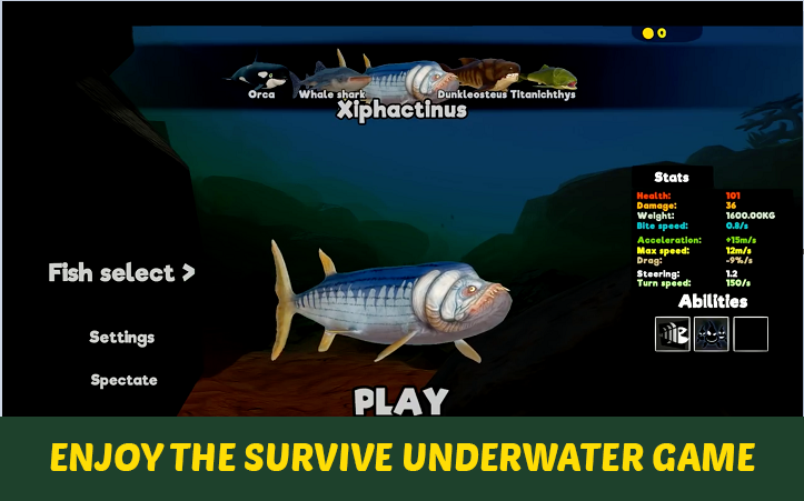 Further development will include new fish abilities and passives,Also, we want to focus on the technical stuff and add new animations.