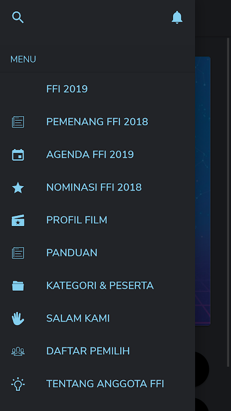 Aplikasi Festival Film Indonesia sebagai info kegiatan dan berita mengenai festival. Aplikasi ini juga mewadahi dla członka FFI. Członek FFI jest członkiem Sineas yang telah pernah mendapatkan nominasi atau memperoleh Piala Citra, wakil komunitas dan wakil asosiasi perfilman Indonesia. Dzięki tej aplikacji można uzyskać najlepsze informacje z FFI i rezerwację online dla wydarzenia Festiwalu wiele szczegółów filmu, które można znaleźć w wielu filmach Nominasi Pemenang Piala Citra di FFI. Event antara lain adalah pemutaran film, event Pengumuman Nominasi, event Malam Anugerah.
