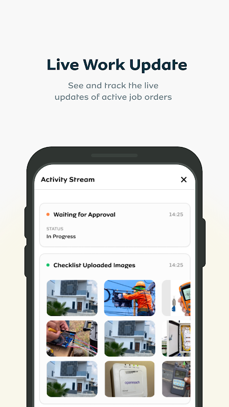 Śledzenie postępów w czasie rzeczywistym: Aktualizuj każdy etap – przyjazd, instalacja, testowanie i ukończenie – jednym dotknięciem.