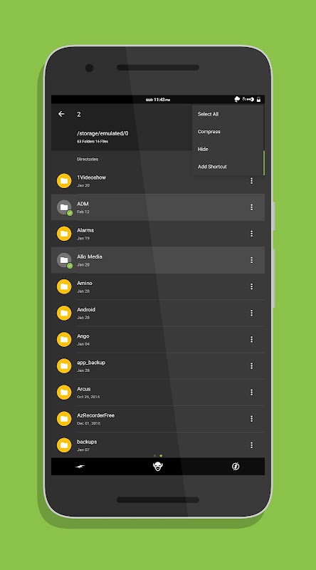 You can always know the storage of your phone, how much used and how much unused. Also, you can browse and edit all folders files by breadcrumb in the top.