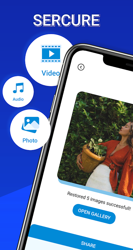 Ta aplikacja może przywracać filmy, zdjęcia i dźwięk do wybranego folderu. Możesz łatwo tworzyć kopie zapasowe i udostępniać pliki.