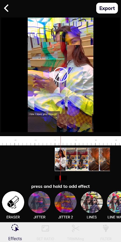 Aplikacja FiltoVideoMaker dostosowała piękne filtry Glitter i efekty VHS