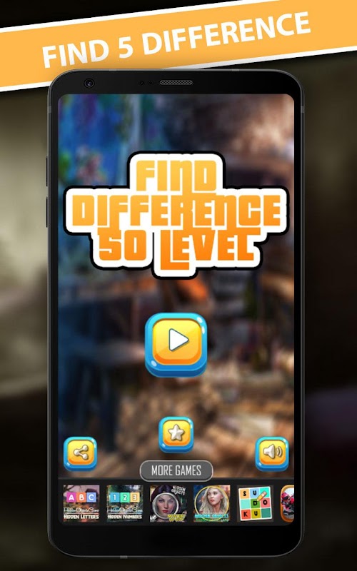 - Spot as many as five difference between two pictures to complete the level and unlock the new levels from the 50 levels.