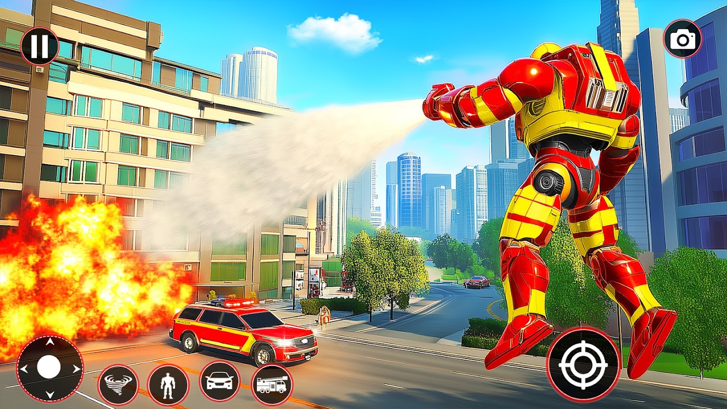 Przygotuj się na niesamowitą grę samochodową z robotem strażackim, w której latająca ciężarówka strażacka musi wykonać różne misje ratownicze w mieście. Ta gra transformacji ciężarówki strażackiej pozwala przejąć kontrolę nad miastem. Zasiądź za kołami latającego robota strażackiego, ponieważ inne karetki ratunkowe spóźnią się na dotarcie do miejsca ratunkowego. Nasza gra robotów strażackich zapewnia najlepsze umiejętności ratownicze straży pożarnej oraz umiejętności transformacji robotów. Czy jesteś fanem gier robotów wraz ze specjalnymi technikami transformacji, to ta mieszanka latającej ciężarówki strażackiej i transformacji robota zapewni ci świetną ekspozycję. Będziesz musiał wykorzystać umiejętności prowadzenia wozu strażackiego wraz z umiejętnościami szybkiego przekształcania robotów, aby ukończyć trudne misje ratownicze. W grze samochodowej z robotami strażackimi ty jako latający robot strażacki strategicznie przeniesiesz wóz strażacki przez niebezpieczne miejsca futurystycznego miasta. W tej grze o transformacji robotów weźmiesz udział w futurystycznej walce o szybkie misje ratownicze przeciwpożarowe.