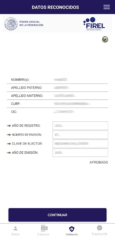• przesłać swoje imię i nazwisko, CURP, e-mail, dane identyfikacyjne, odciski palców, podpis autografu;