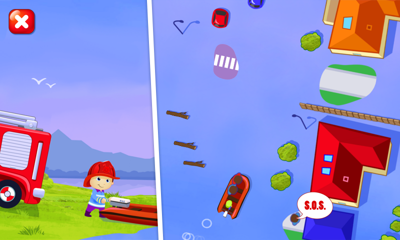 Zostań strażakiem! Dowiedz się, co odważni strażacy muszą codziennie wykonywać w pracy. Ratuj ludzi przed powodziami, pożarami, trzęsieniami ziemi i radzić sobie z innymi niebezpiecznymi sytuacjami. Będziesz mógł prowadzić wozy strażackie i łódź, zjeżdżać po słupach i przydzielać zadania innym dzielnym strażakom. Wykonuj niebezpieczne misje, aby odblokować nowe hełmy i mundury.