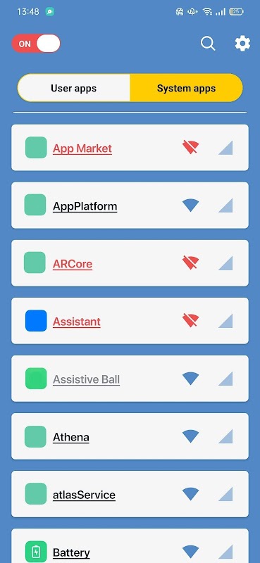 🔶 Aplikacjom można zezwolić lub odmówić dostępu do Wi-Fi i/lub połączenia mobilnego.