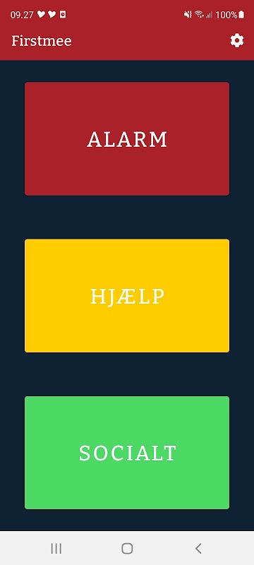 Appen er opdelt i rød alarm (1-1-2 opkald), gul alarm (tilkald anden hjælp) eller grøn alarm (opret eller deltage i social aktivitet).