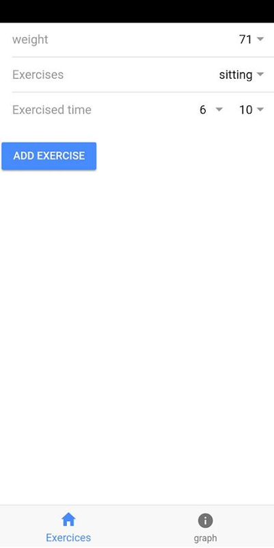 geef je gewicht, oefening en tijdsduur in en je calorieën verschijnen in een grafiek.