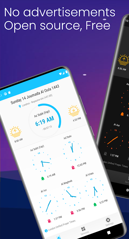 - Powiadomienie i Adhan czyta na czas modlitwy.