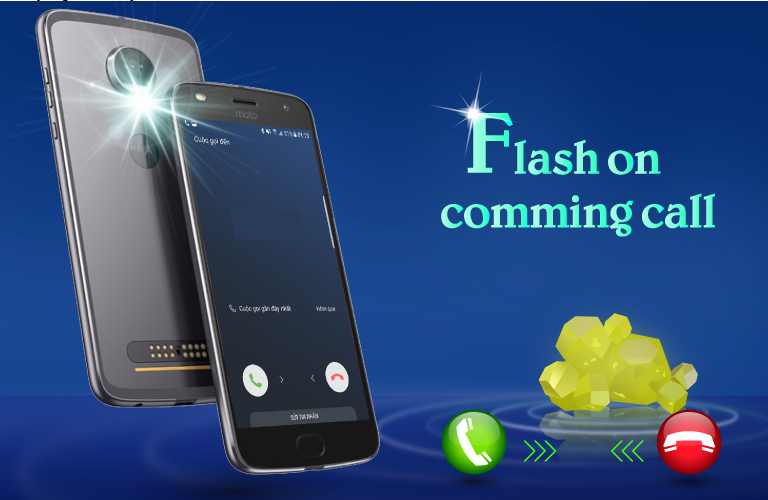 ✓ Ringing flashlight when phone have incoming Call and incoming SMS and Notification