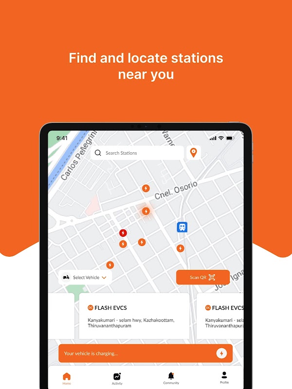 Flash Charge posiada sieć ponad 100 stacji ładowania w Indiach, dzięki czemu zawsze znajdziesz miejsce, w którym możesz naładować swój samochód. Dzięki naszej łatwej w obsłudze aplikacji możesz znaleźć najbliższą stację i zapłacić za ładowanie za pomocą zaledwie kilku dotknięć.