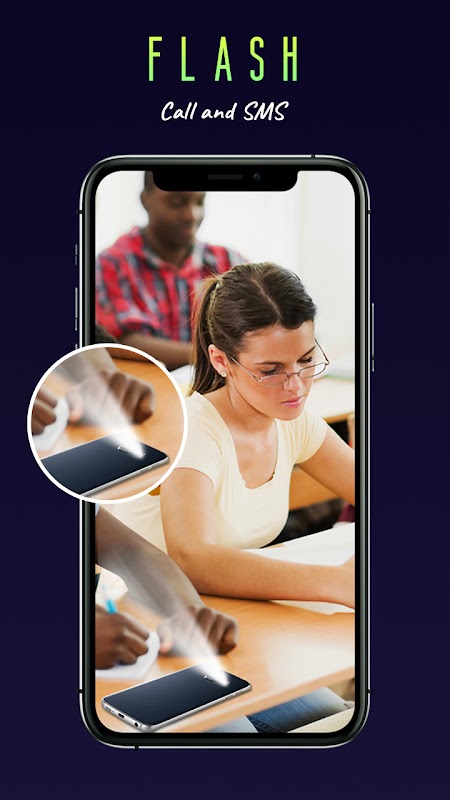 Migające alerty w aplikacji połączeń i SMS-ów. Całkiem przydatne ostrzeżenia o miganiu lampą błyskową w ciemnych miejscach lub na spotkaniach, w których dzwonki lub wibracje powodują zakłócenia. Wielokolorowe migające alerty Flash podczas połączenia to inteligentne narzędzie przypominające o przychodzącym połączeniu lub SMS-ie za pomocą latarki aparatu.