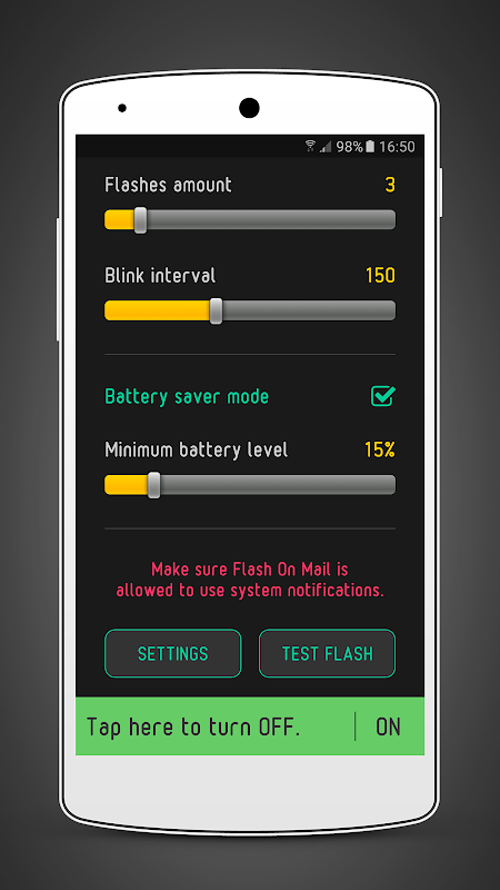 Upewnij się, że lampy błyskowej Poczta może używać powiadomień systemowych!