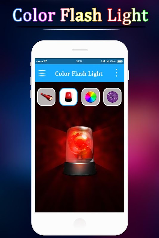 Use your camera flash to get the brightest flashlight or color effects for an incredible color change of the lights. This application is one of our many free apps and one of the best apps for android on the market. If you're a fan of police and crime stories you can use police lights on your screen to simulate the real ones. Whatever you choose, you are guaranteed to have fun with this awesome phone flashlight app. 2 - Choose the app you want to get color flashlight alert,