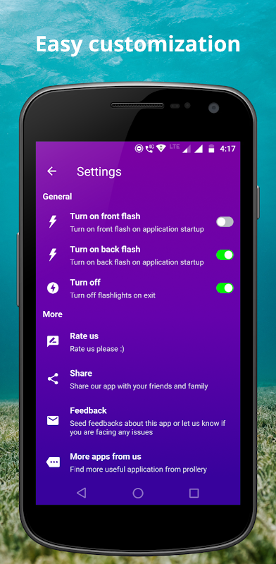 ✔ Rozmiar aplikacji to tylko kilka kbs i działa szybko i lekko. Jest to jedna z najprostszych i najlepszych aplikacji Latarka dla Androida dostępnych na rynku