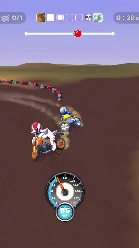Przygotuj się na najlepsze wrażenia z driftu na motocyklu terenowym! Stuknij, aby przyspieszyć swój motocykl terenowy i zwolnij w idealnym momencie, aby wykonać oszałamiające drifty. Czy potrafisz pokonać trudne zakręty, nie zjeżdżając z toru?