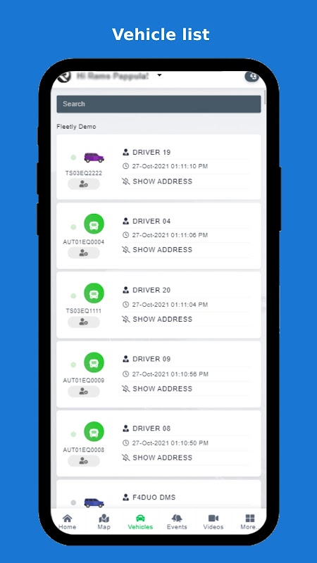 Fleetly supports wide range of hardware options such as GPS Trackers, Dashcams (Dash cameras), Multi camera vehicle CCTV systems (Mobile DVR), Safety kits such as DVS, Fuel Sensors and Driver ID and many more sensors