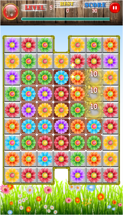 - Swap Flower Pop to match 3 or more same Flower Pop in a line to crush them.