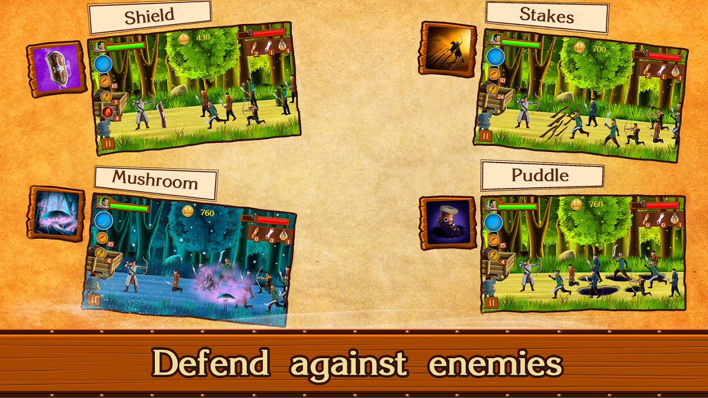 • Wide choice of weapons: Bows, Arbalests, knives, freeze bombs and fire potions, and special archery skills;