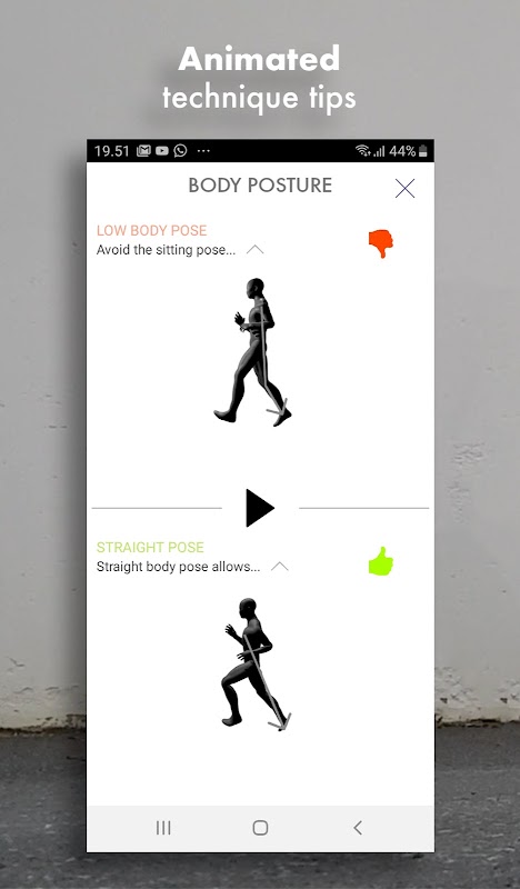 * Oprócz pomiaru dystansu, prędkości i czasu, może również śledzić parametry techniki biegu, takie jak długość kroku, rytm, czas kontaktu, czas lotu i równowaga kontaktu, korzystając z czujników ruchu w telefonie.
