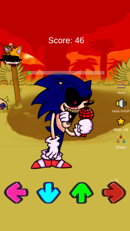 Co robić w teście znaków FNF SONIK.EXE? Musisz zdobyć jak najwięcej punktów. Jak to zrobić? Przed rozpoczęciem gry wybierz stan bohatera i muzykę, które lubisz najbardziej, a następnie kliknij przycisk Odtwórz. Po uruchomieniu gry klikaj strzałki na ekranie swojego urządzenia. Gdy tylko klikniesz na strzałkę, bohater zaśpiewa nutę i wykona określony ruch, a ty otrzymasz punkty. Jeśli zdobyłeś 800 punktów, to dobry wynik meczu. Jeśli udało Ci się zdobyć więcej niż 1000 punktów - jesteś świetny w grze FNF SONIK.EXE Mod Test.