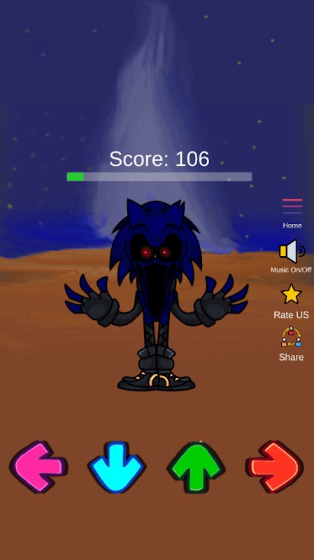 Co robić w FNF Sonik.ExeEndah Mod Test? wszystko jest proste! Musisz zdobyć jak najwięcej punktów. Przed rozpoczęciem gry wybierz stan bohatera oraz muzykę, a następnie kliknij odtwarzaj. Po uruchomieniu gry klikaj strzałki na ekranie swojego urządzenia i zdobywaj punkty. Jeśli zdobyłeś 1500 punktów, to dobry wynik gry. Jeśli uda Ci się zdobyć więcej niż 2000 punktów, jesteś świetny w teście FNF Sonik.ExeEndah.
