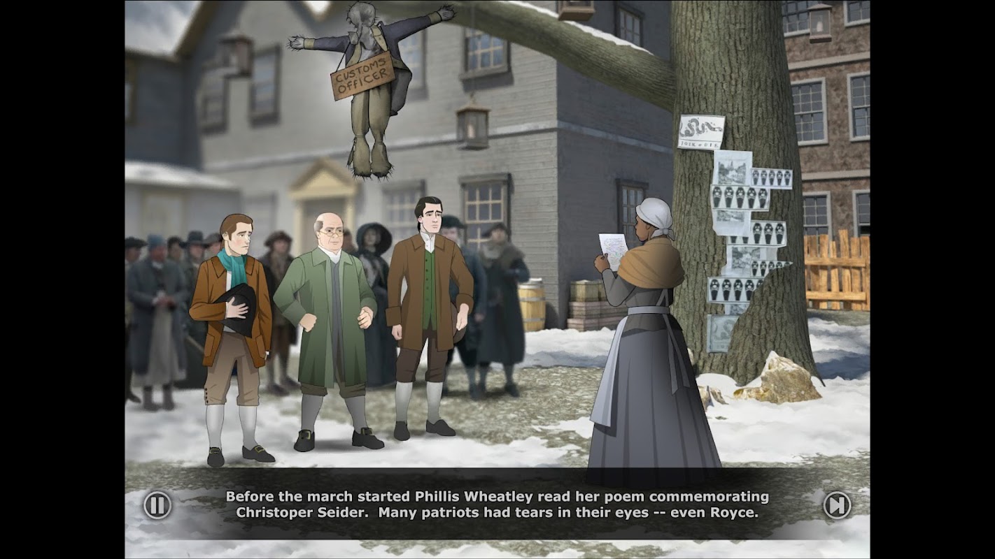 Rok 1770. Jesteś 14-letnim Nathanielem Wheelerem. Właśnie opuściłeś rodzinną farmę, aby zostać uczniem drukarza w Bostonie. Podczas swojej podróży po mieście spotykasz ludzi o różnych poglądach, od Czerwonych Mundurów i kupców lojalistycznych po poetów, uczniów i Synów Wolności – nie wspominając o Constance Lillie, uroczej młodej siostrzenicy kupca lojalisty. Kiedy napięcia między żołnierzami a obywatelami wybuchają podczas masakry bostońskiej, musisz zdecydować, komu jesteś wierny. Czy jesteś z Patriotami, czy lojalny wobec Korony? I czy pomożesz Constance odnaleźć jej zaginionego psa?