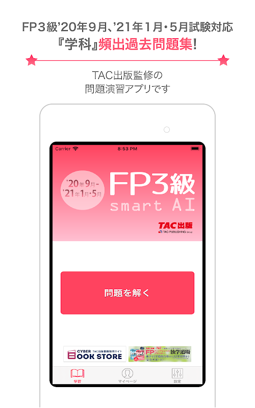 本アプリは、TAC出版FP独学道場と一体となった問題演習ツールです。