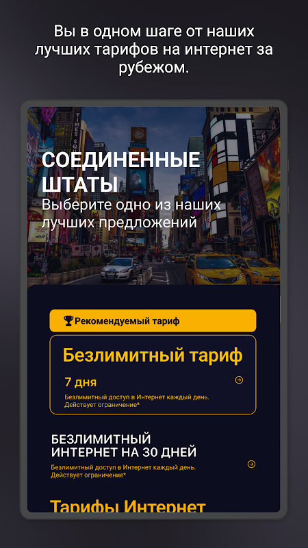 Ciesz się połączeniem internetowym podczas każdej podróży zagranicznej.