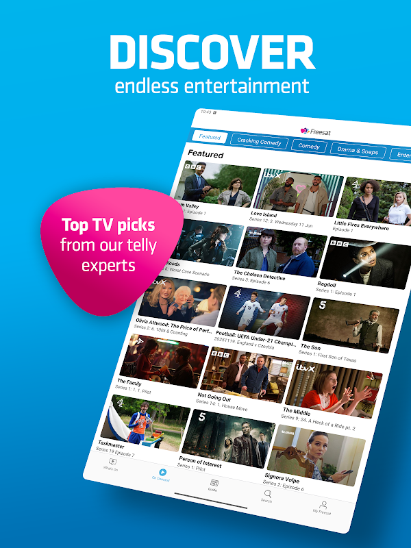 *Przeglądaj świetne programy z BBC iPlayer, ITVX, Channel 4, 5 i innych, wszystko w jednym miejscu. Upewnij się tylko, że masz te aplikacje na swoim urządzeniu, aby uzyskać najlepsze wrażenia z Freesat